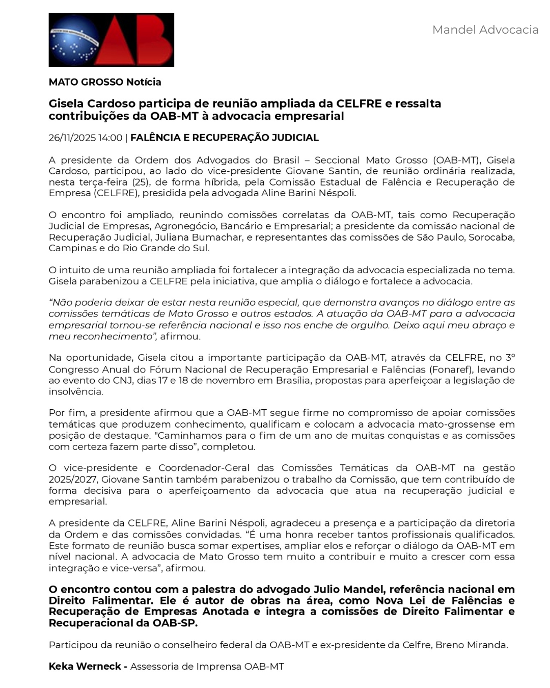 Contribuições da OAB-MT à advocacia empresarial